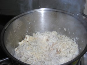 Tempere com sal e a nós moscada; reserve.
