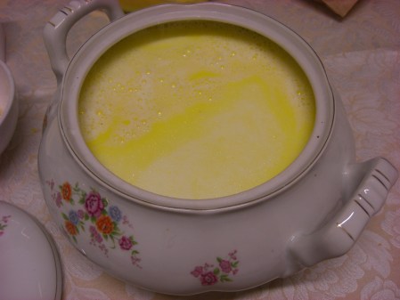 Cupim curado com espuma de cará e caldo de pimentão assado com feijão manteiguinha.