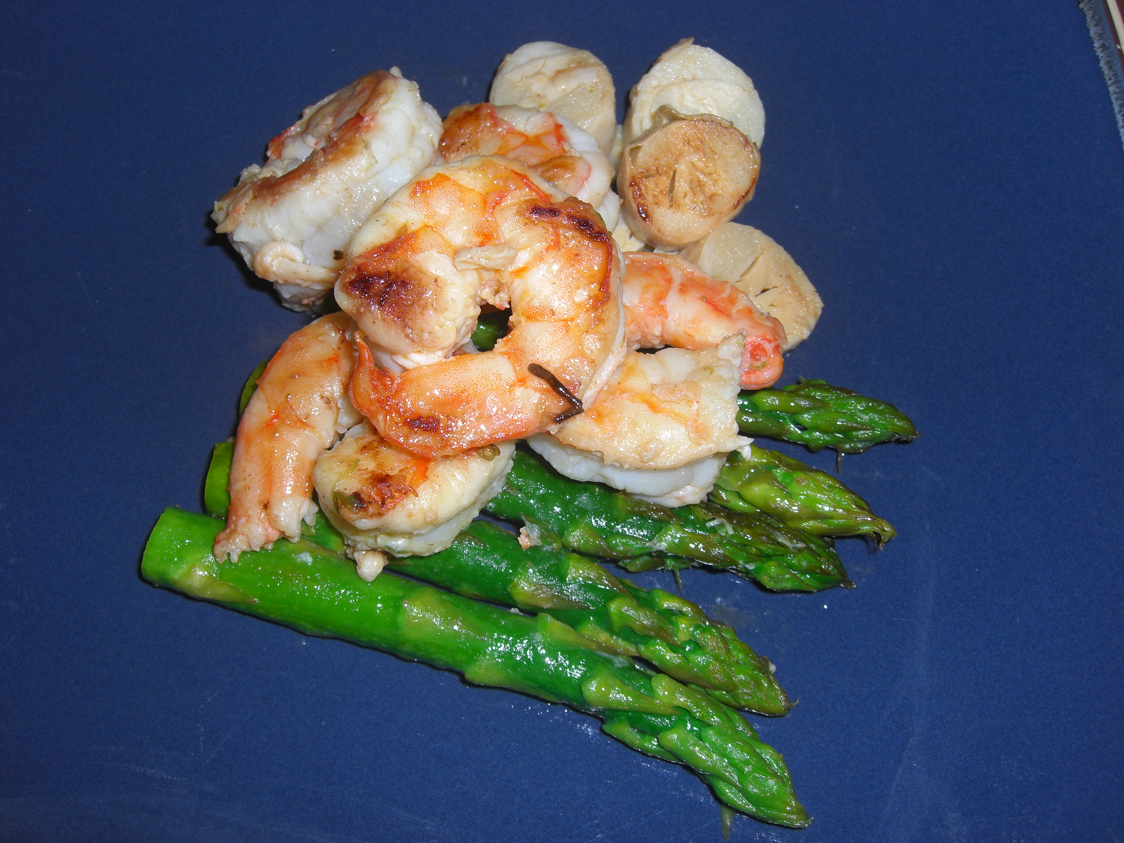 Mas é um acompanhamento bastante versátil, veja este que servi com camarões e palmitos grelhados…