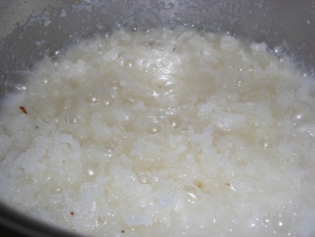 Cozinhe em fogo brando por aproximadamente 3 horas, fazendo como no outro caldo, retire a espuma que vai se formar na superfície.