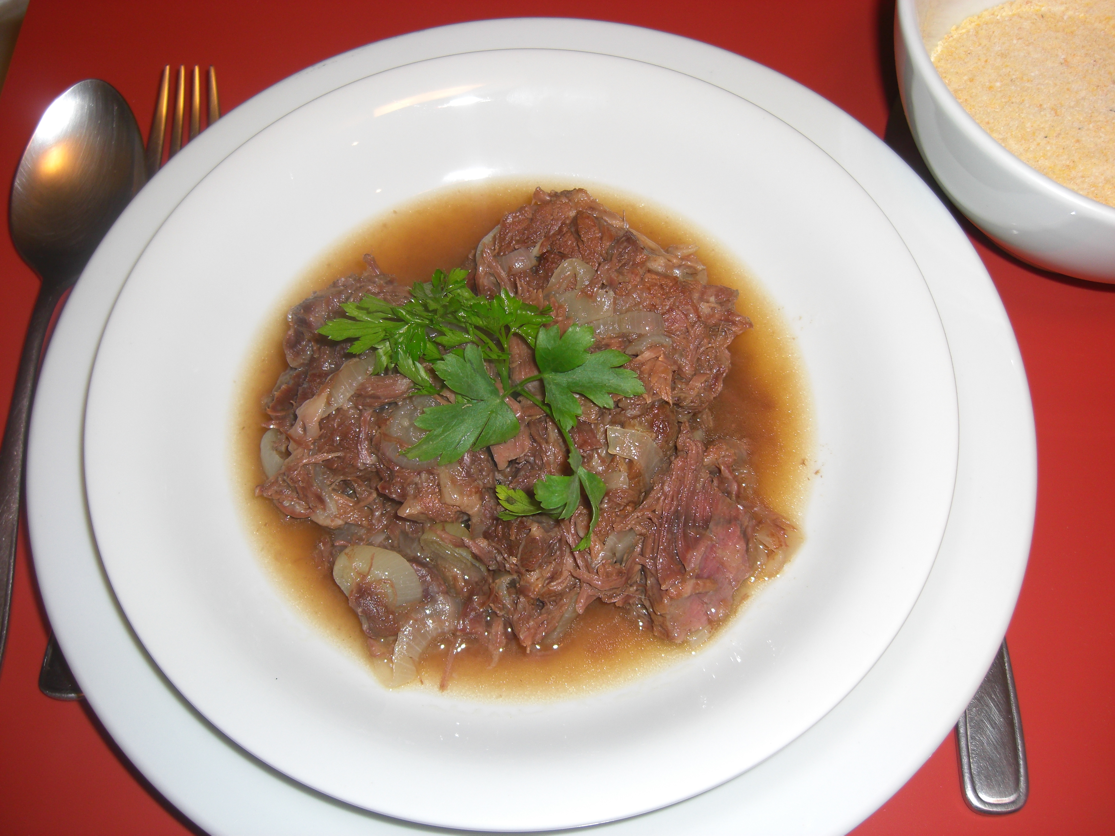 É comum servir este prato com uma farinha de mandioca ou até mesmo a farinha de milho em flocos, eu usei a de mandioca, e ficou muito bom, uma comida bem reconfortante para esses dias frios….