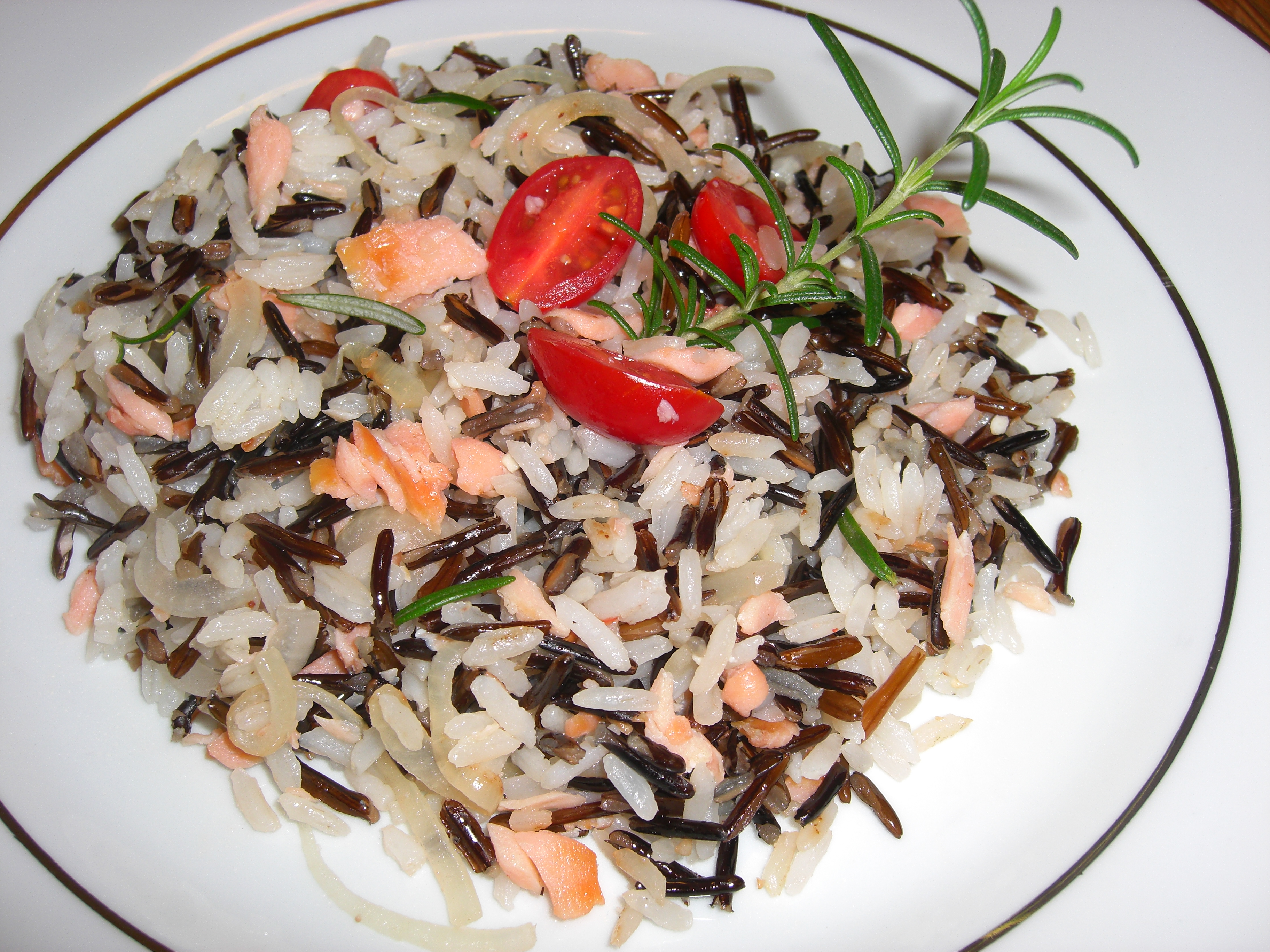 Essa semana fiz um detox de carnes vermelha e frango, gosto de dar uma folga para o meu organismo de vez em quando, então ontem a noite fiz esse arroz selvagem só que desta vez usei salmão defumado, mas poderia ter usado o fresco.
