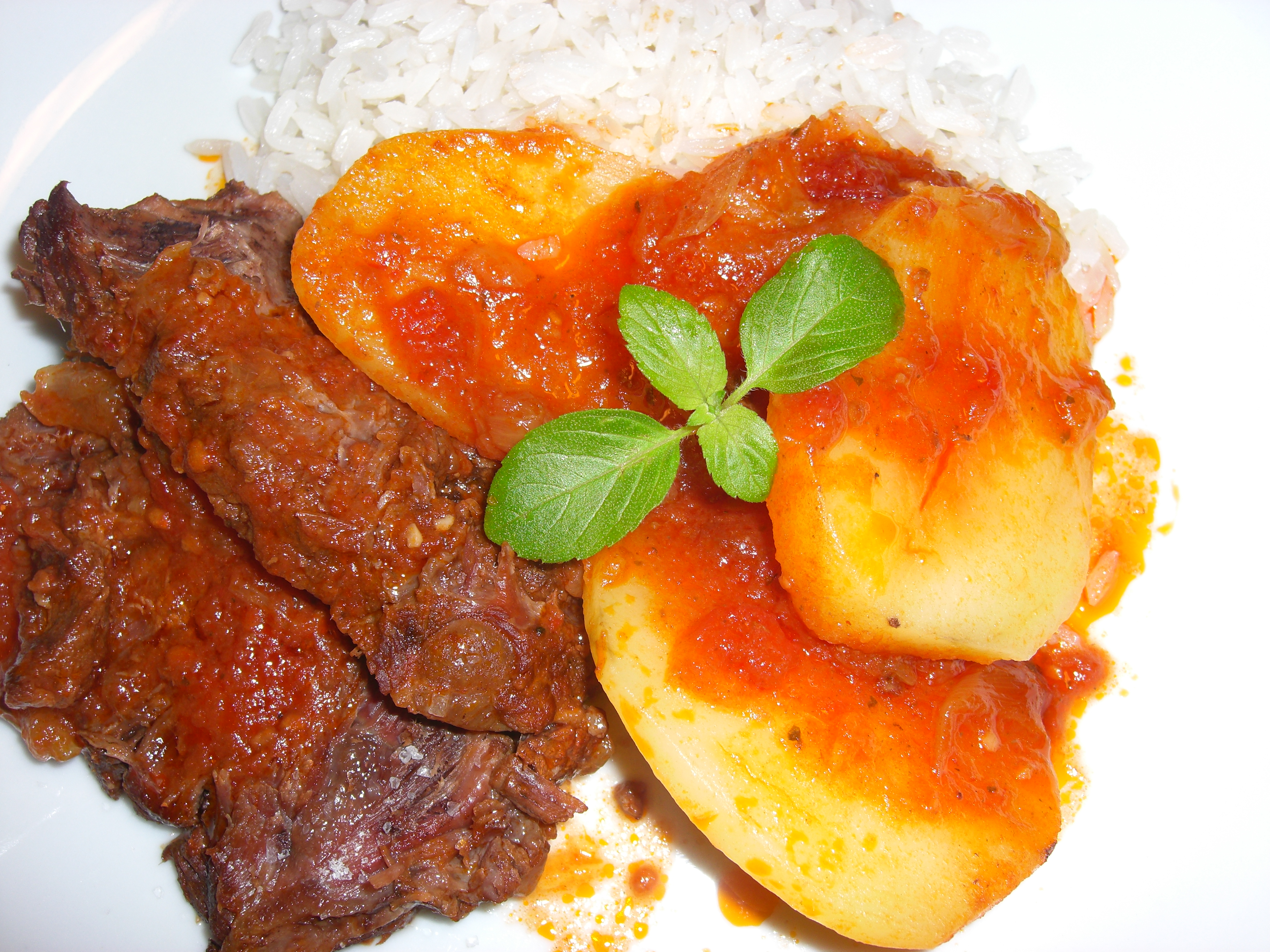 Esta eu fiz assim; coloquei uma peça de açem de mais ou menos 800 gr e deixei dourar em uma panela de pressão , em seguida coloquei 2 cebolas cortadas em meia lua, 3 dentes de alho, inteiros e 4 tomates sem sementes picados em pedaços médios, o sal, duas folhas de louro, um pedacinho de pau de canela (opcional) e a pimenta do reino.