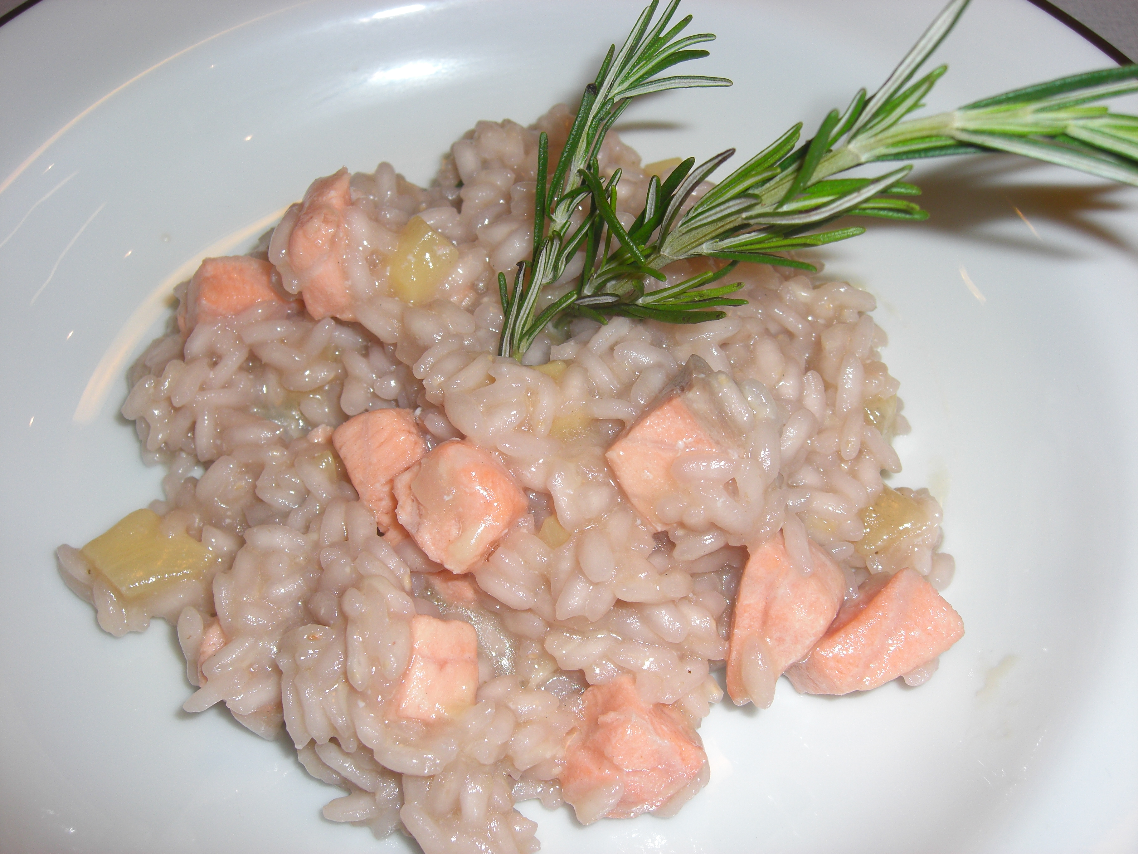 Fiz esse risoto de salmão fresco com fundo de alcachofra, dois ingredientes que aprecio muito e o resultado foi melhor do que eu esperava.