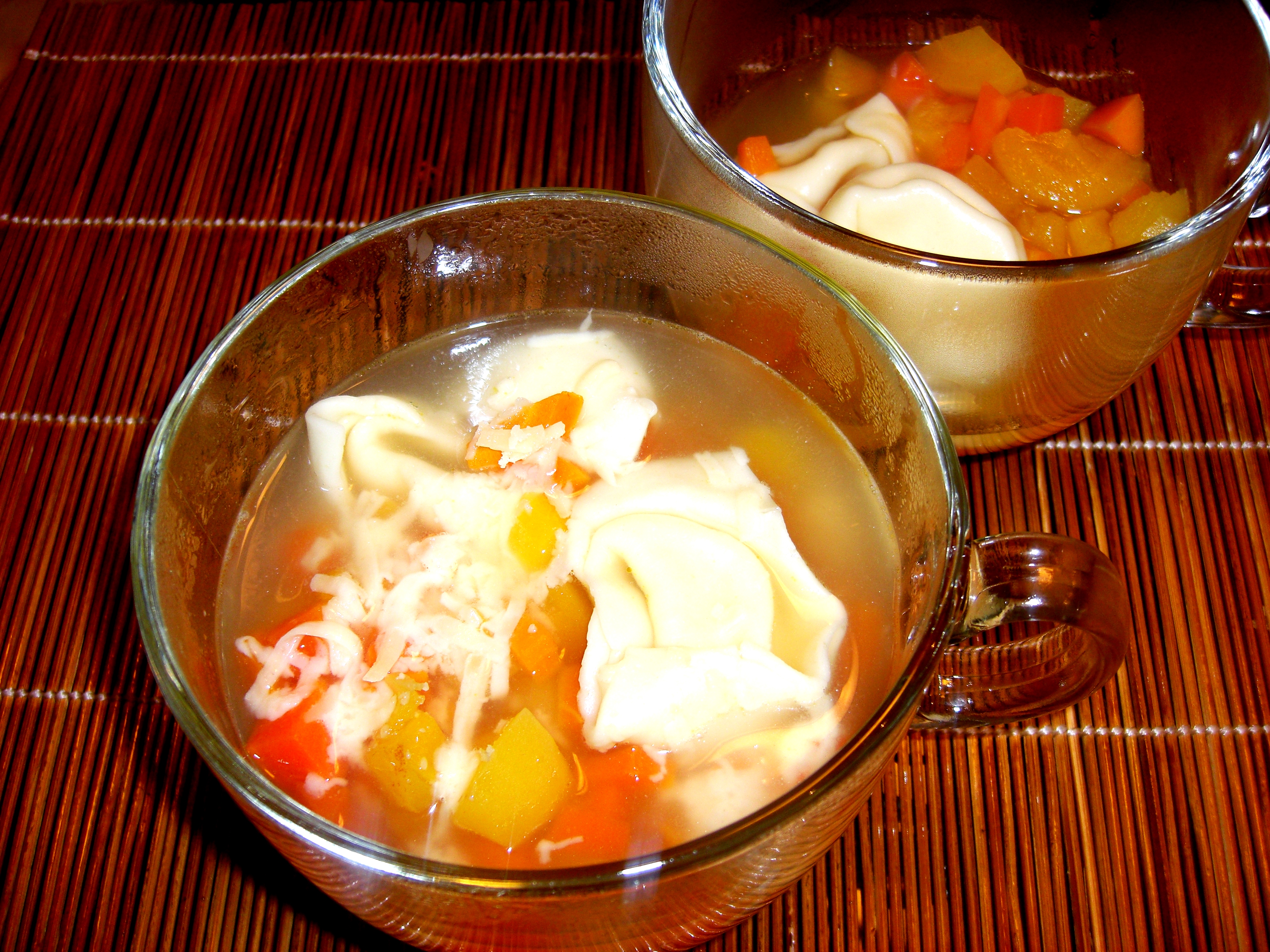 E esse eu fiz com cenoura e mandioquinha, porque gosto de comer na hora do almoço e se for só o capeletti in brodo ia me dar fome muito rápido.