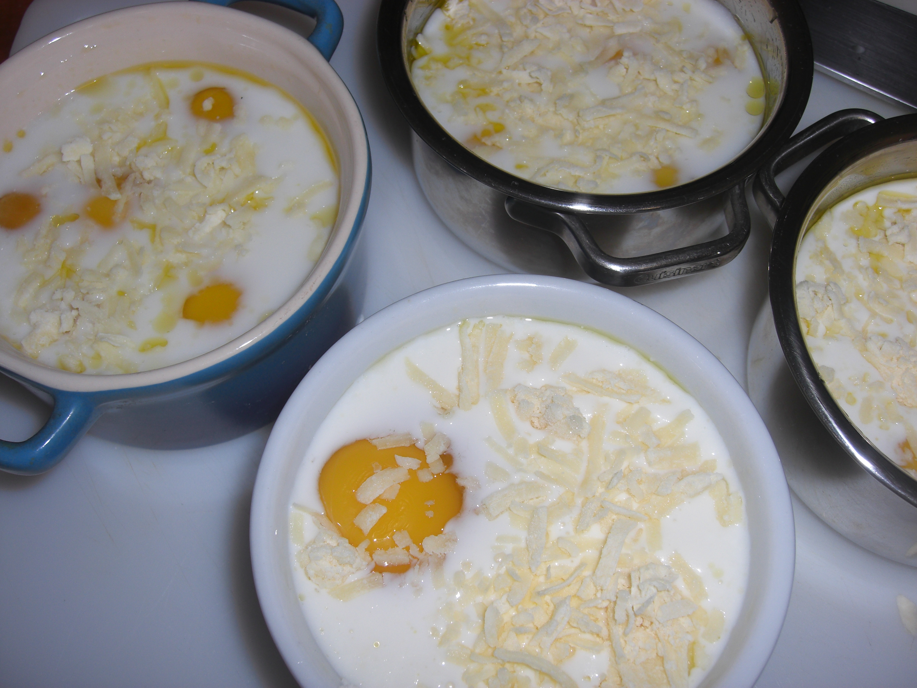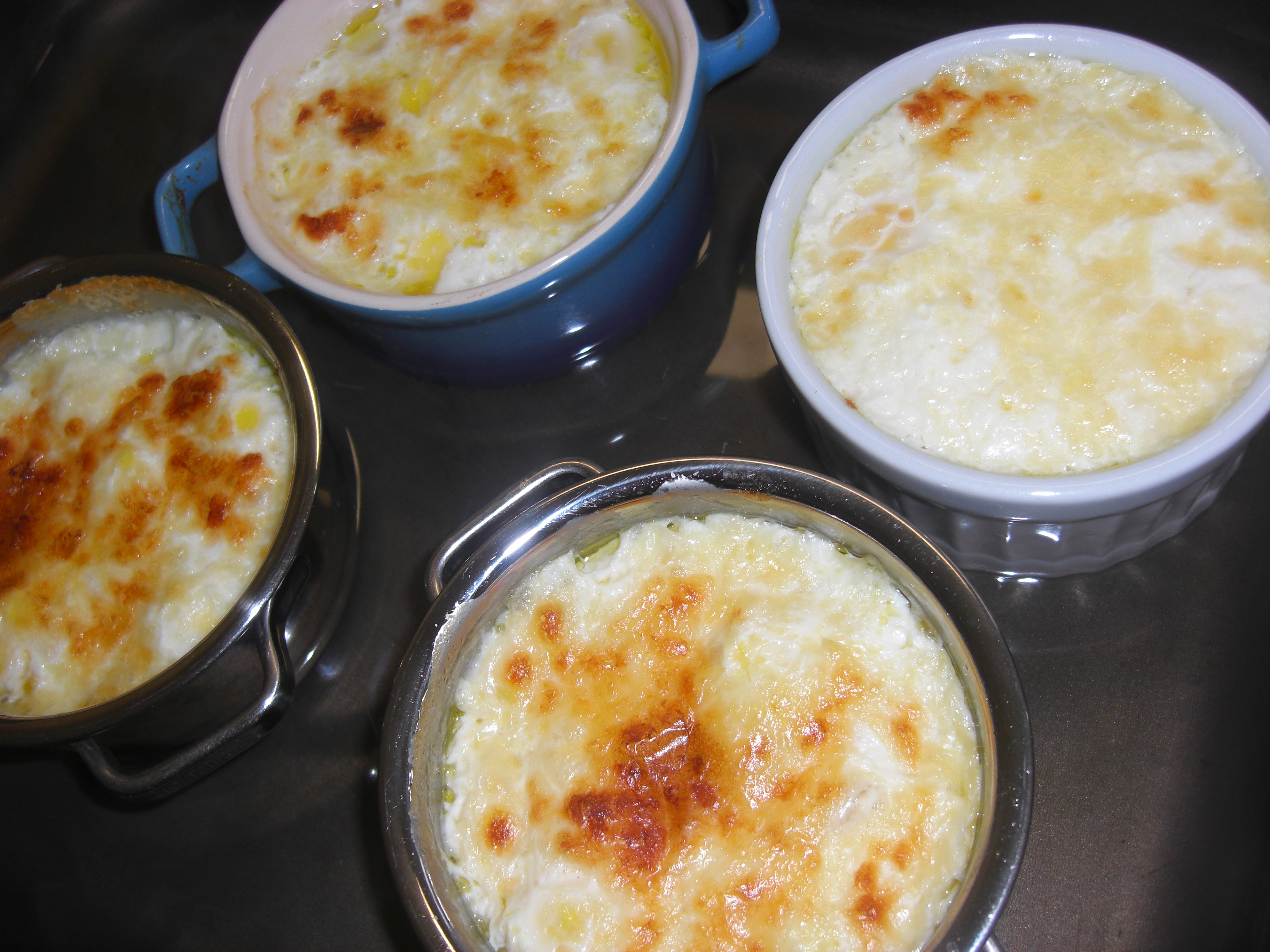 reguei com creme de leite fresco, temperei com sal e pimenta, salpiquei com queijo parmesão ralado, levei ao forno em banho maria por aproximadamente 15 minutos.