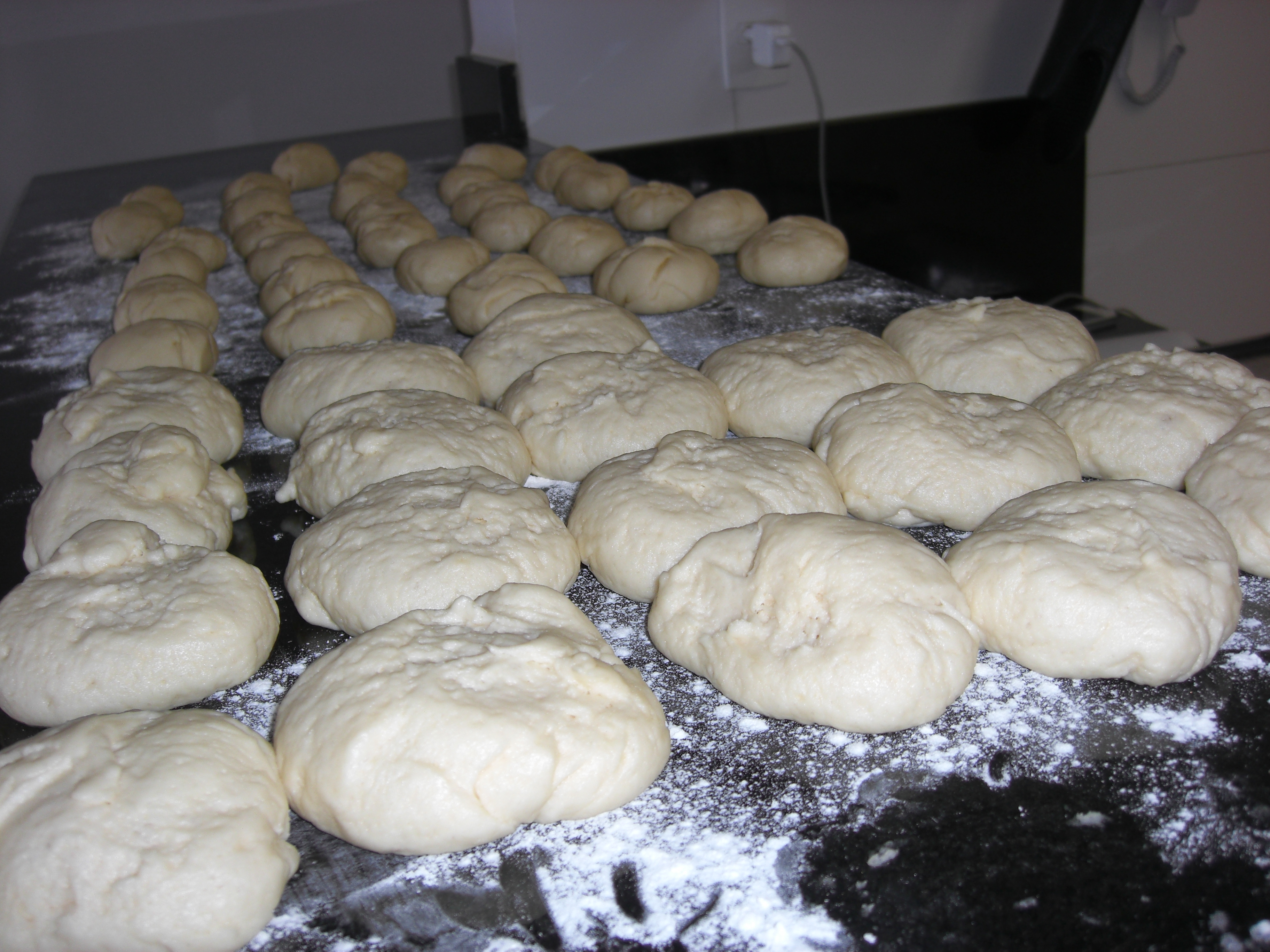 Faça bolinhas do tamanho de uma ameixa e deixe descansar para a massa crescer;