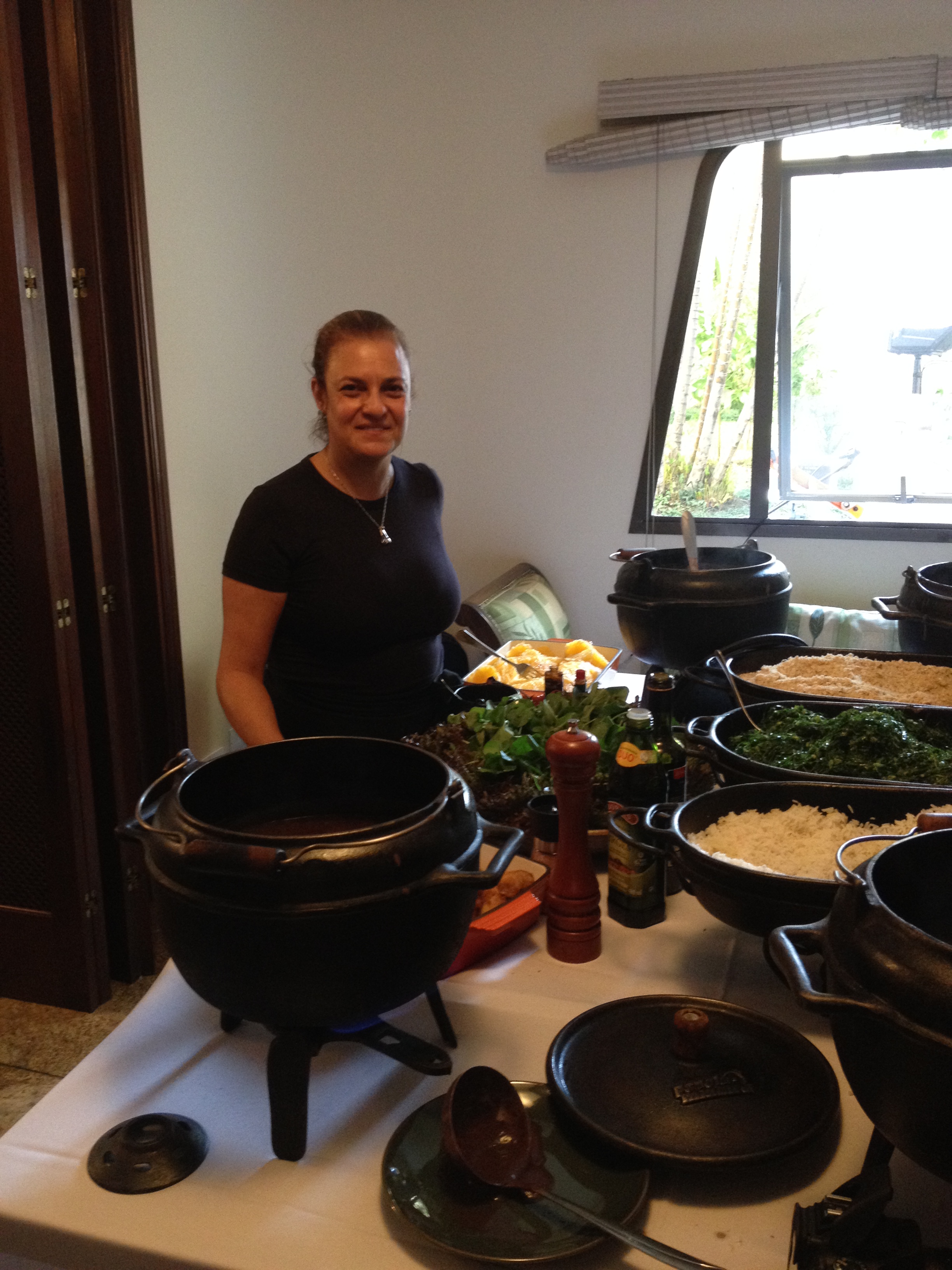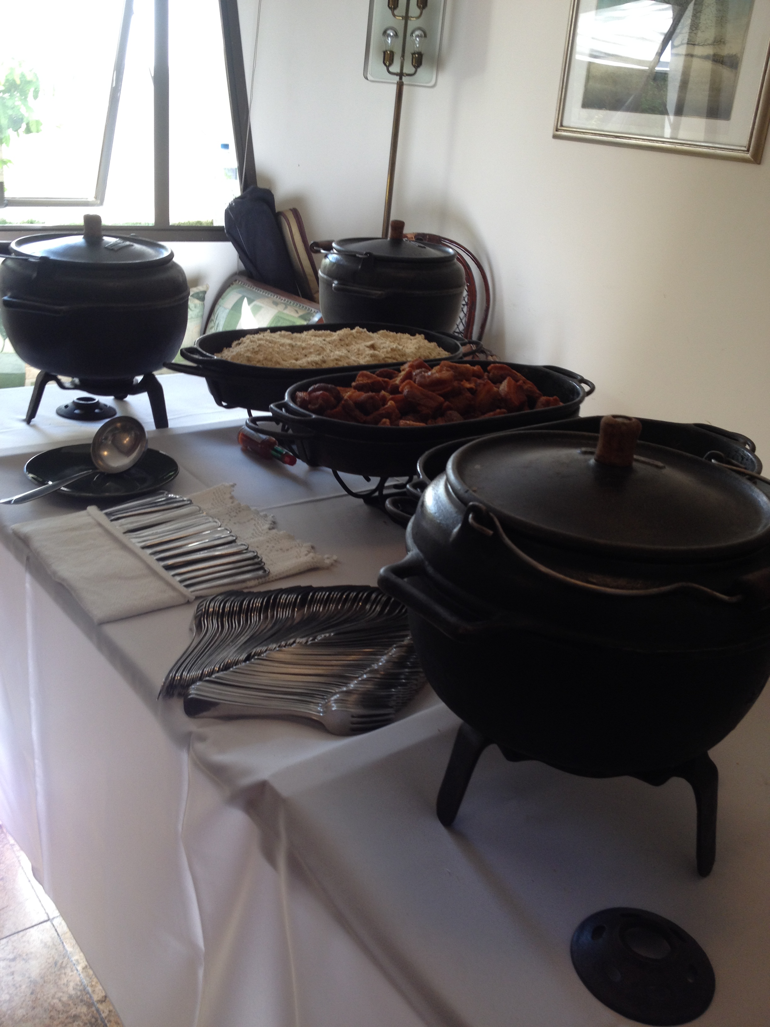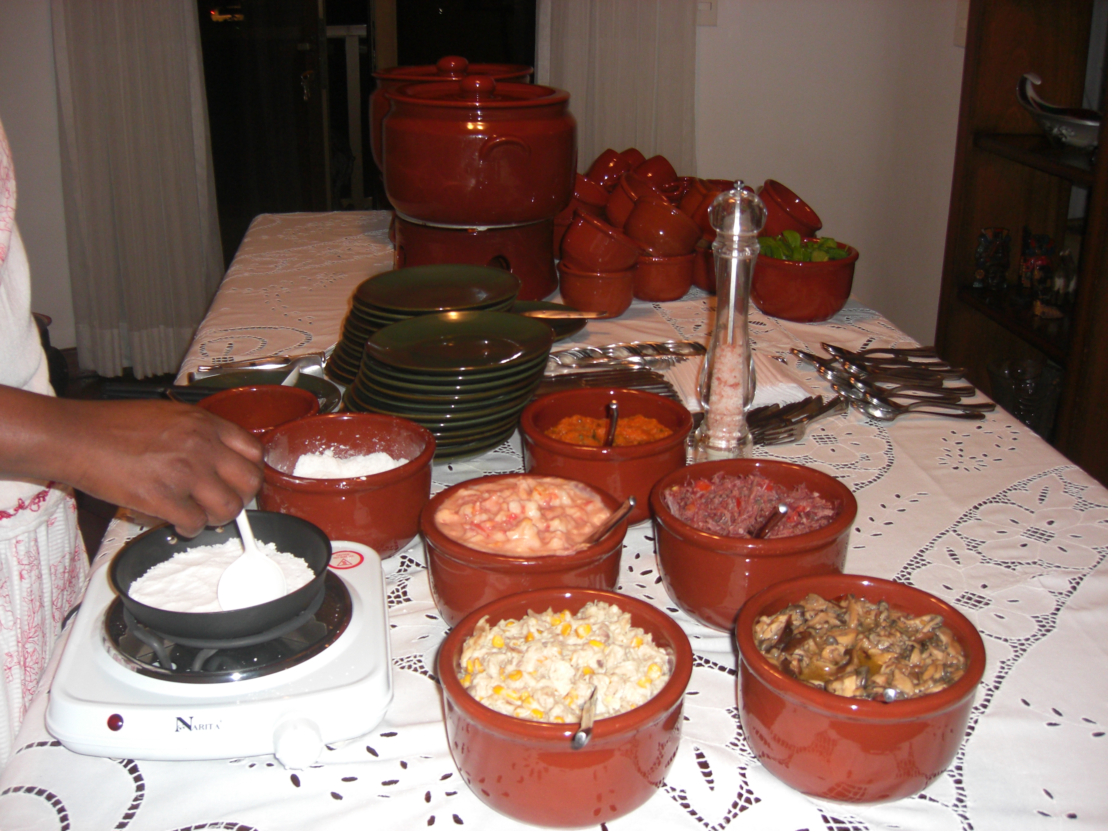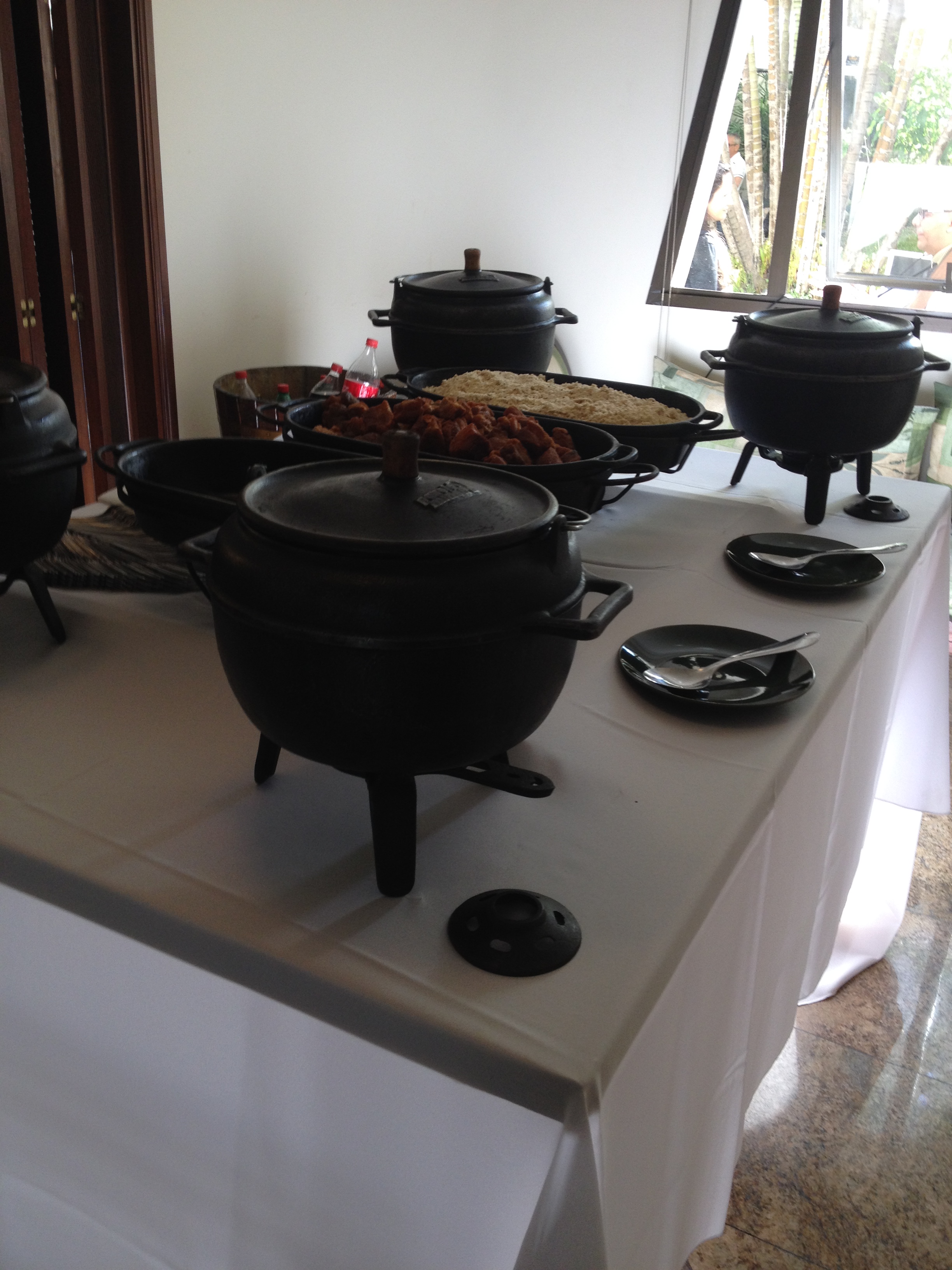 Assim que todos estavam no local, servimos uma moqueca mista de peixe com camarões, e seus acompanhamentos.