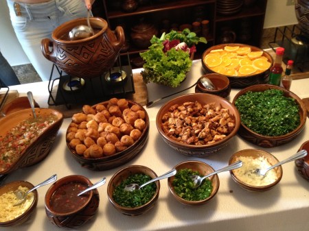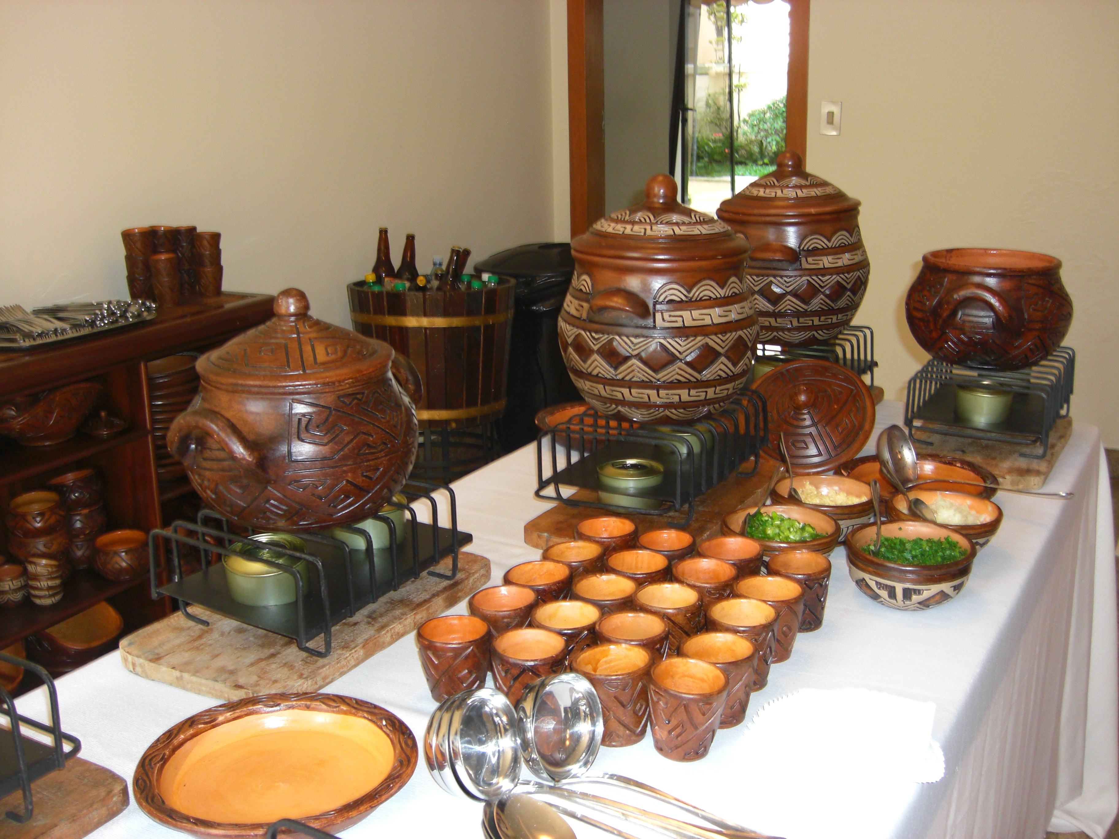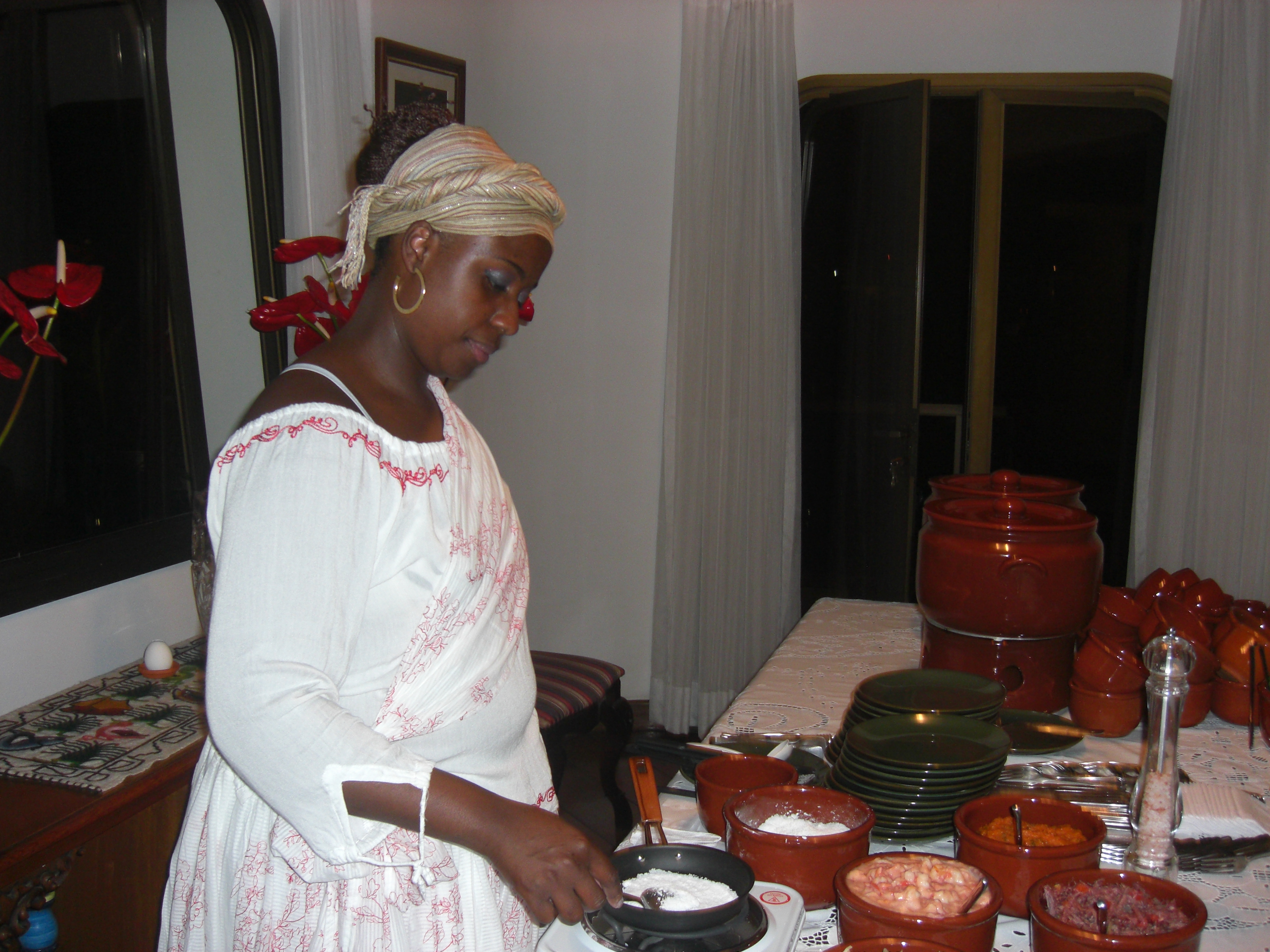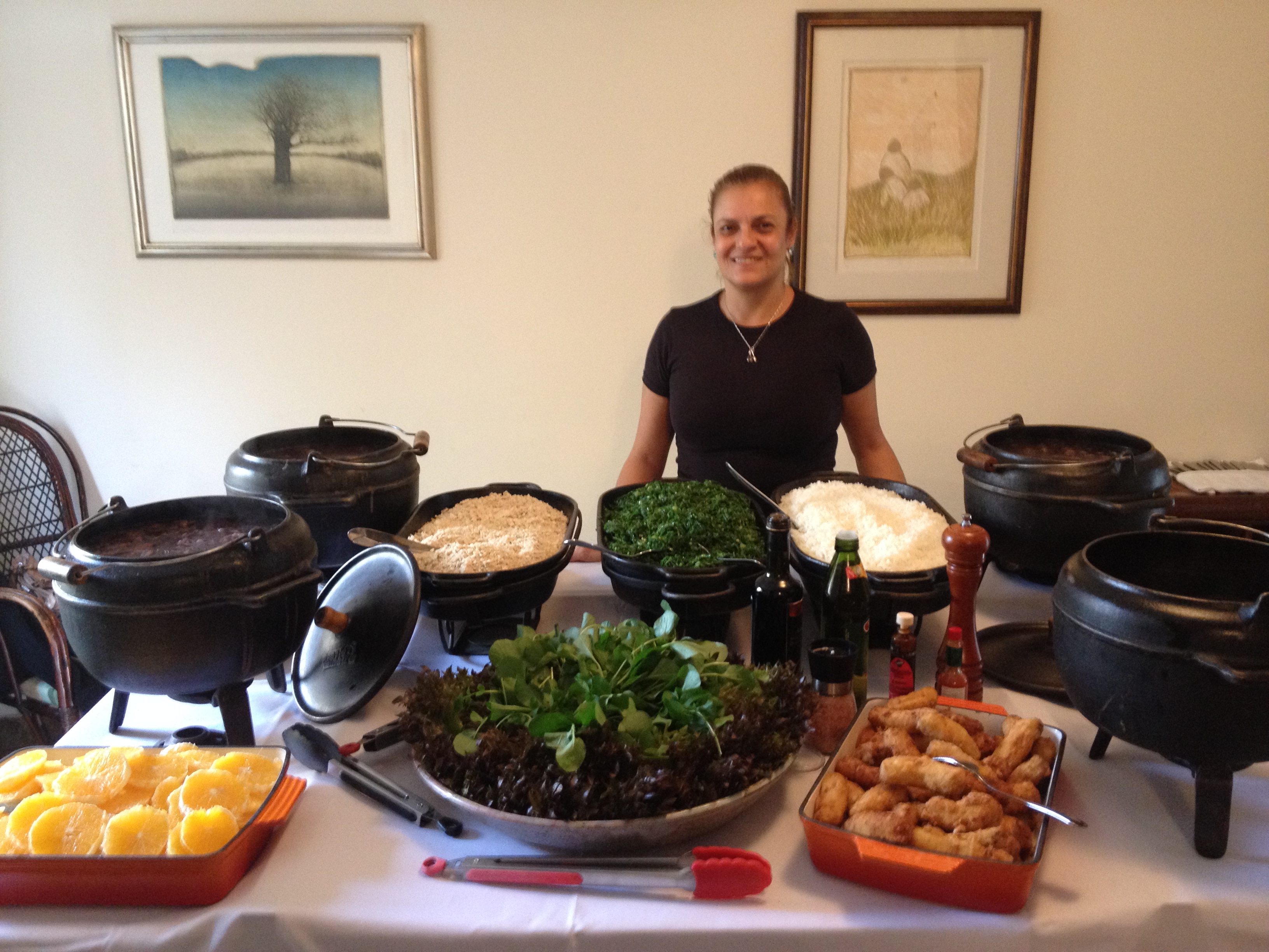 Assim que todos estavam no local, servimos uma moqueca mista de peixe com camarões, e seus acompanhamentos.