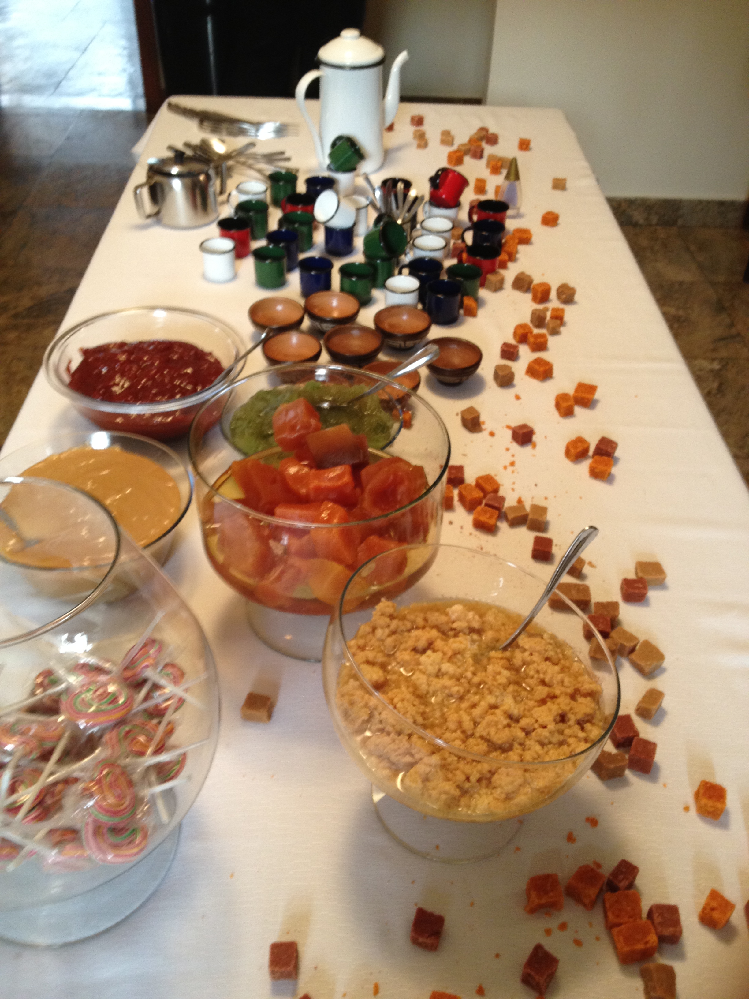 Para a sobremesa, um sorvete de capim cidreira, mas não podemos esquecer da mesa do bolo e dos docinhos.