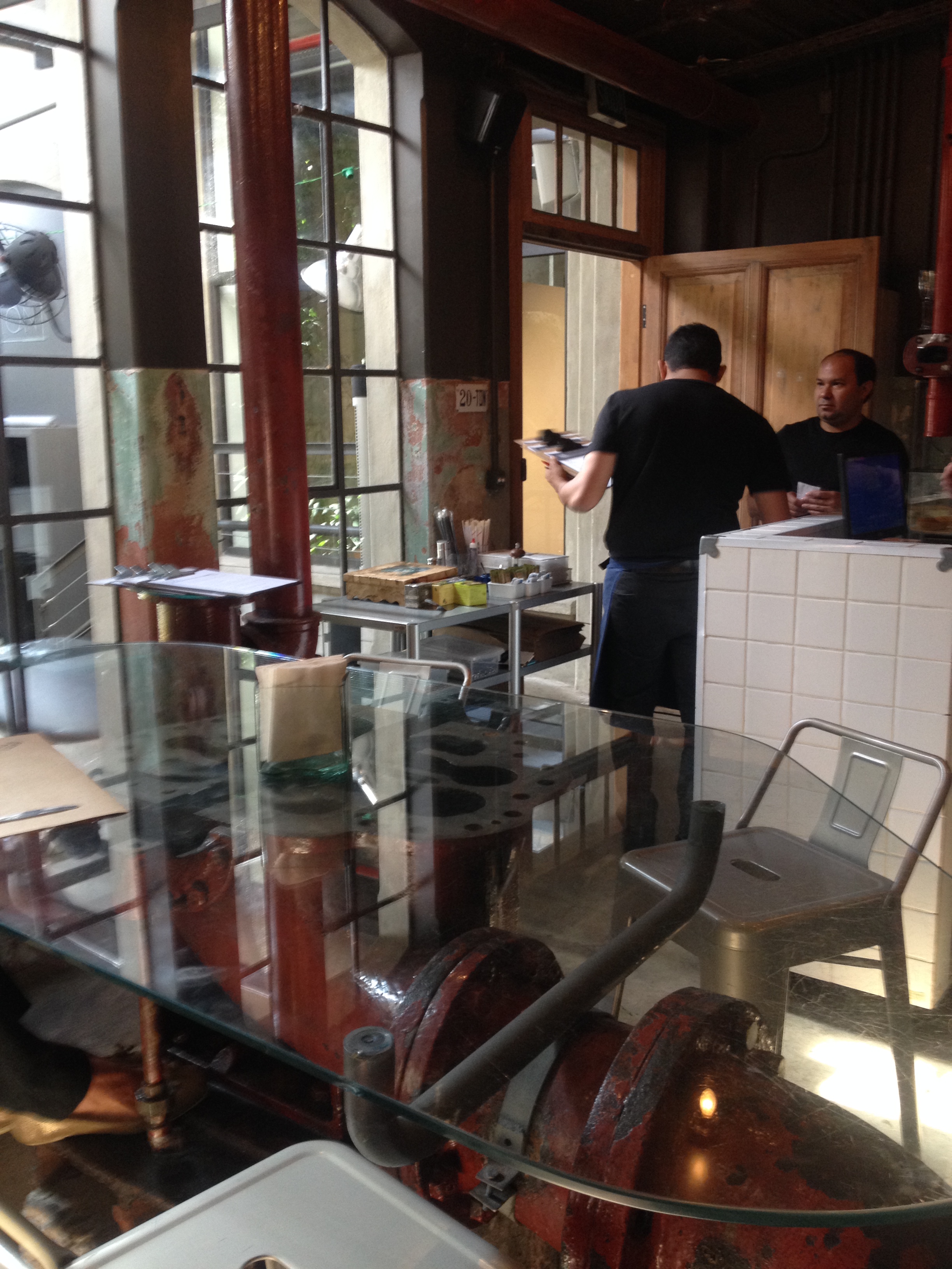 São servidos um menu executivo que varia semanalmente, com entrada, prato principal e sobremesa, ao preço fixo de R$ 36,00.