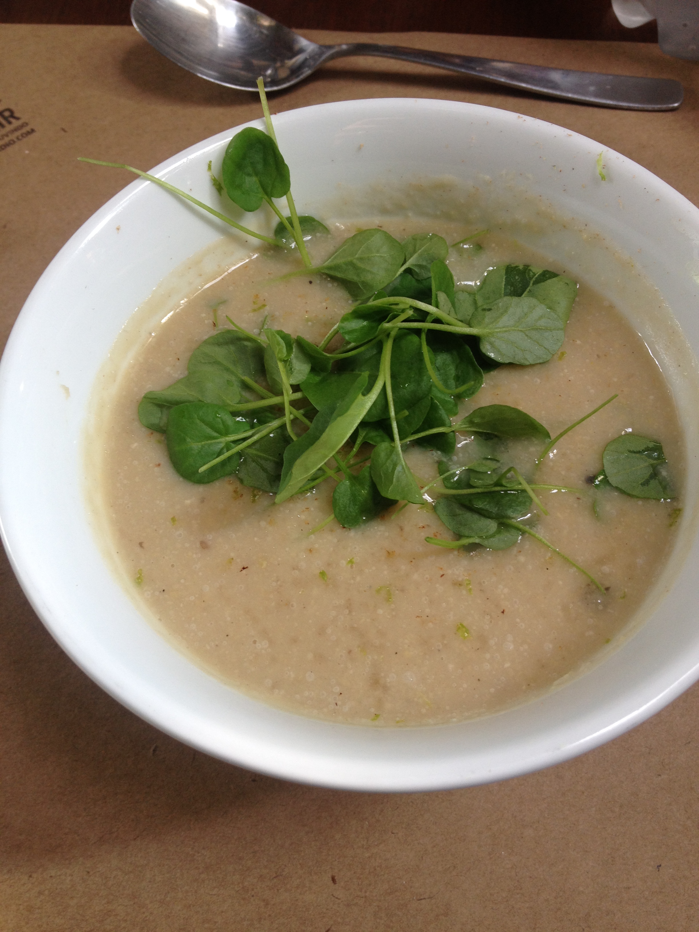 Optei pela entrada de sopa de grão de bico com especiarias;
